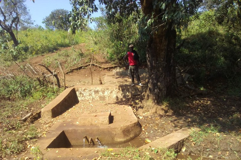 A fountain has been built for use in the Oromia region. The system starts with the collection of the springs in the rock and then they are redirected through channels to a closed rectangular structure. This structure allows the water to be stored for later distribution to the population and prevents it from being contaminated by, among other things, the defecation of animals, dead animals or its use for washing laundry, for example. It also allows for its treatment if necessary.
