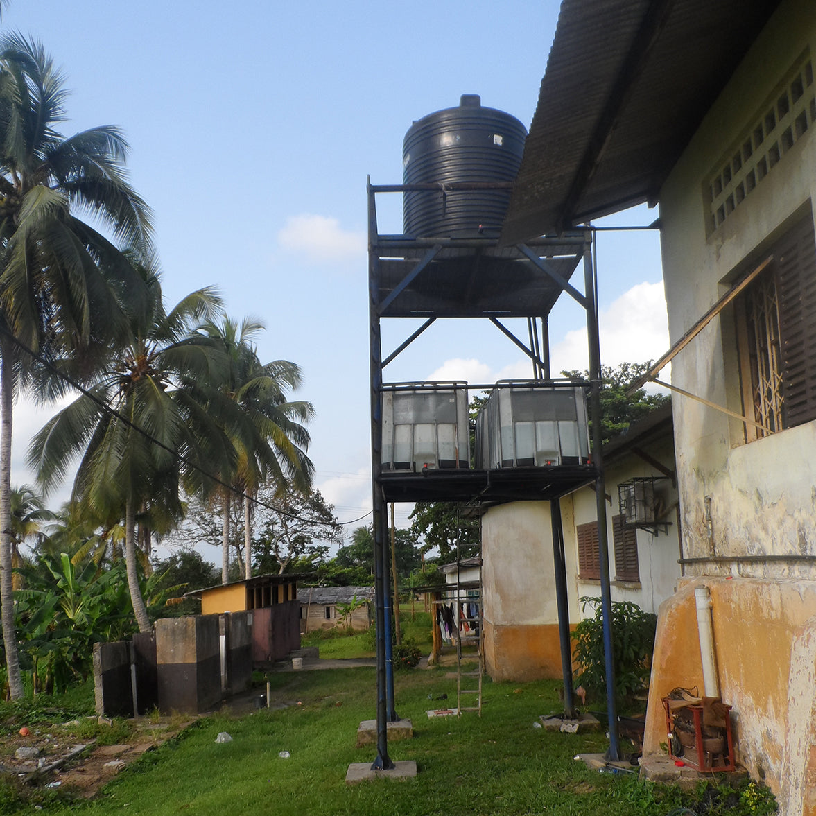 Para el acceso al agua potable, existe una instalación de forraje buena que data del año 1991. Pero hoy, ya casi 26 años después, con el alto grado de humedad, todas las tuberías están oxidadas, ya algunas muy alteradas, llegando a punto de romperse, dejando ya pasar agua por fuera. Se necesita con bastante emergencia, rehabilitar todo antes de que se pueda estropear del todo. Esta situación afecta a las personas que recurren al pozo para el abastecimiento de agua, tanto población para uso personal, como para los niños de la escuela y profesionales de la leprosería.